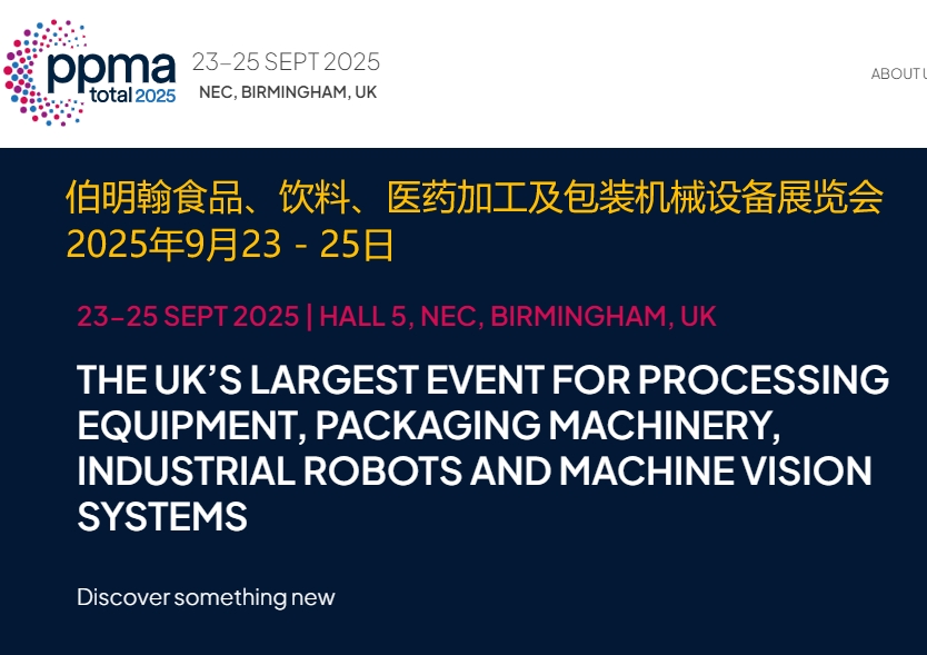 英國(guó)伯明翰食品、飲料、醫(yī)藥加工及包裝機(jī)械設(shè)備展覽會(huì)(PPMA TOTAL 2025)是英國(guó)包裝領(lǐng)域中最重要的專業(yè)盛會(huì),由歷史悠久的三個(gè)展覽會(huì)PPMA、PAKEX及INTERPHEX合并而成。PPMA專注于加工技術(shù)和包裝機(jī)械展示,PAKEX聚焦包裝設(shè)備和包裝材料,INTERPHEX則主要展示生物和醫(yī)療技術(shù) 。
