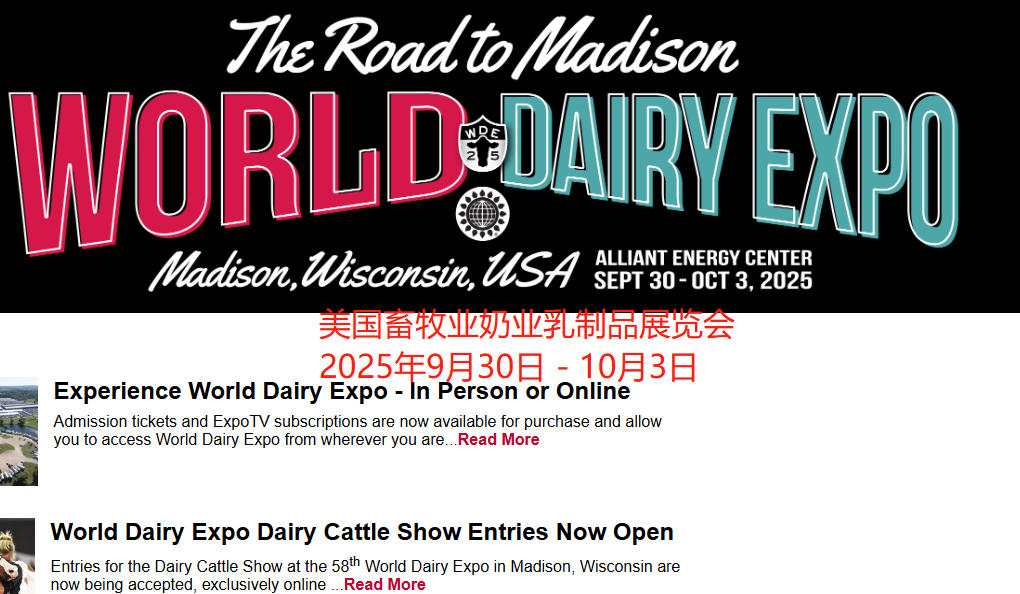 展覽網(wǎng)站:http://www.worlddairyexpo.com